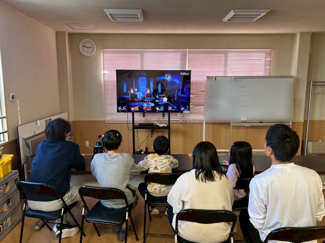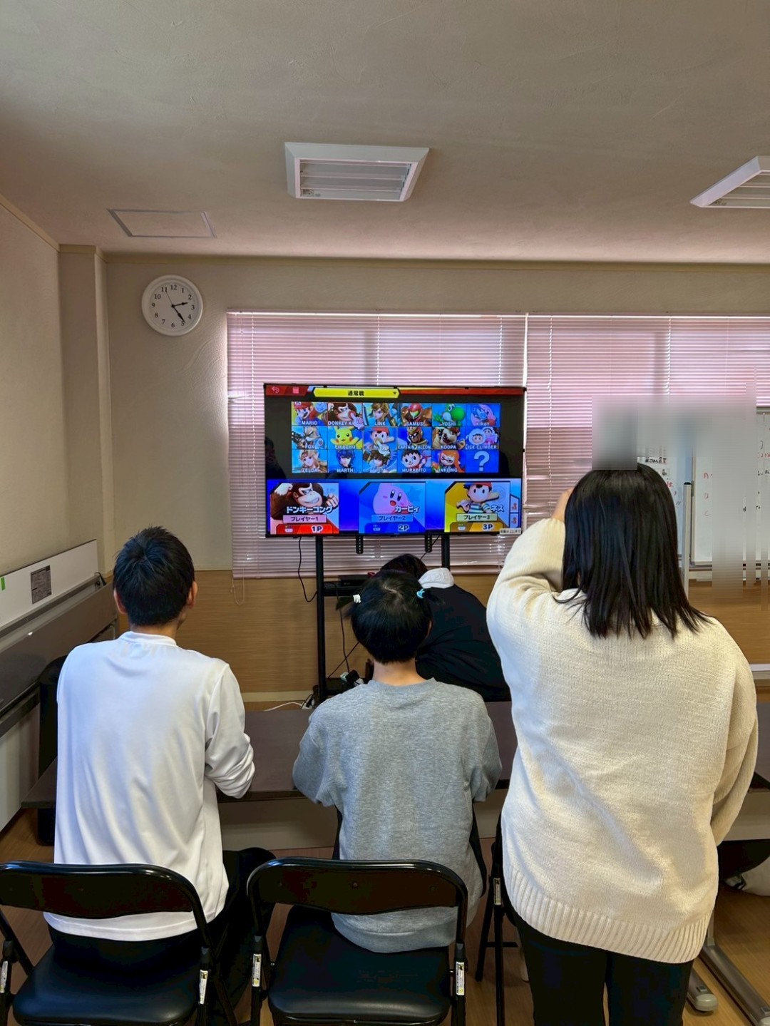 プレイルームでは、スマッシュブラザーズを行ない、子ども達に混ざりスタッフも参加して大盛り上がりでした😊