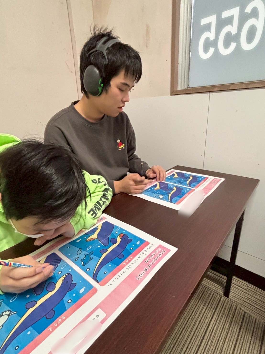一方、学習室組では紙を使った間違い探しに挑戦📝