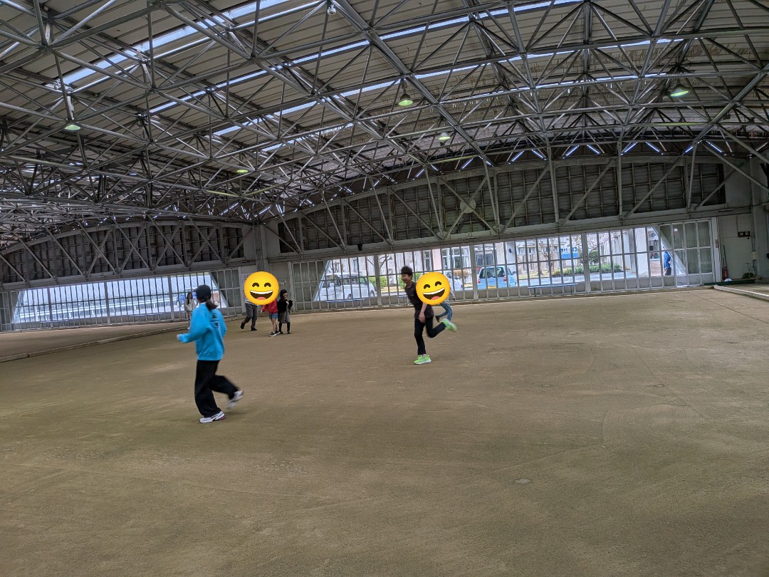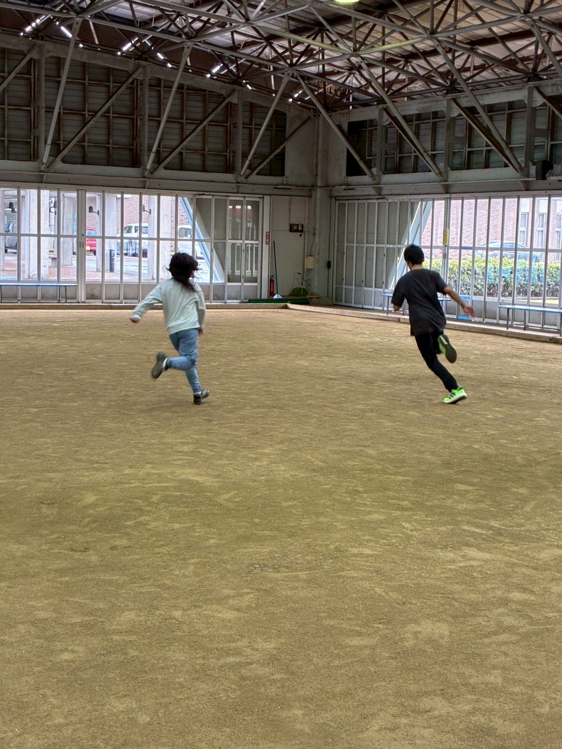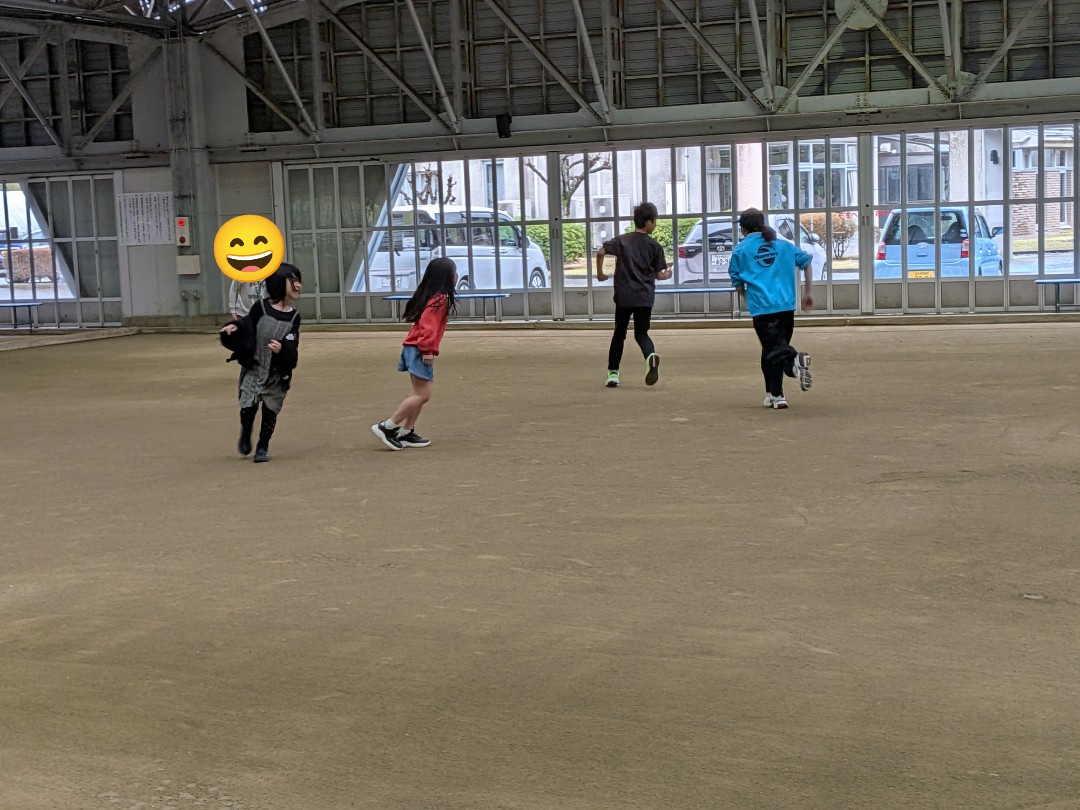外組は、雨☔がふっていたので、屋根のあるグランド?屋内でスタッフと一緒に鬼ごっこしたり、キャッチボール⚾したり、バドミントン🏸したりと身体をしっかり動かしました🙋✨鬼ごっこでは、スタッフはヘトヘトになってました😂以外と子ども達の足が速いとの事でした😅