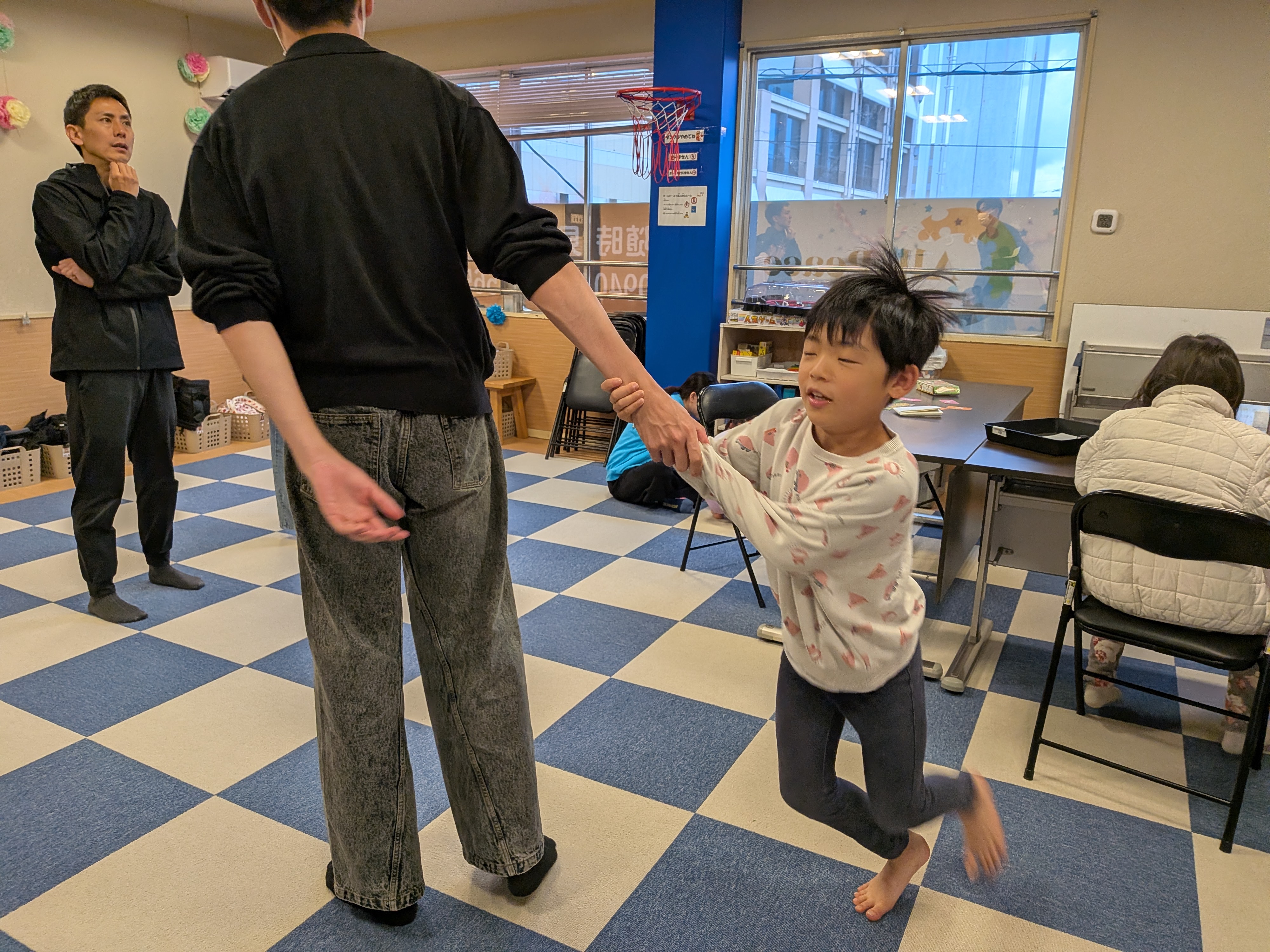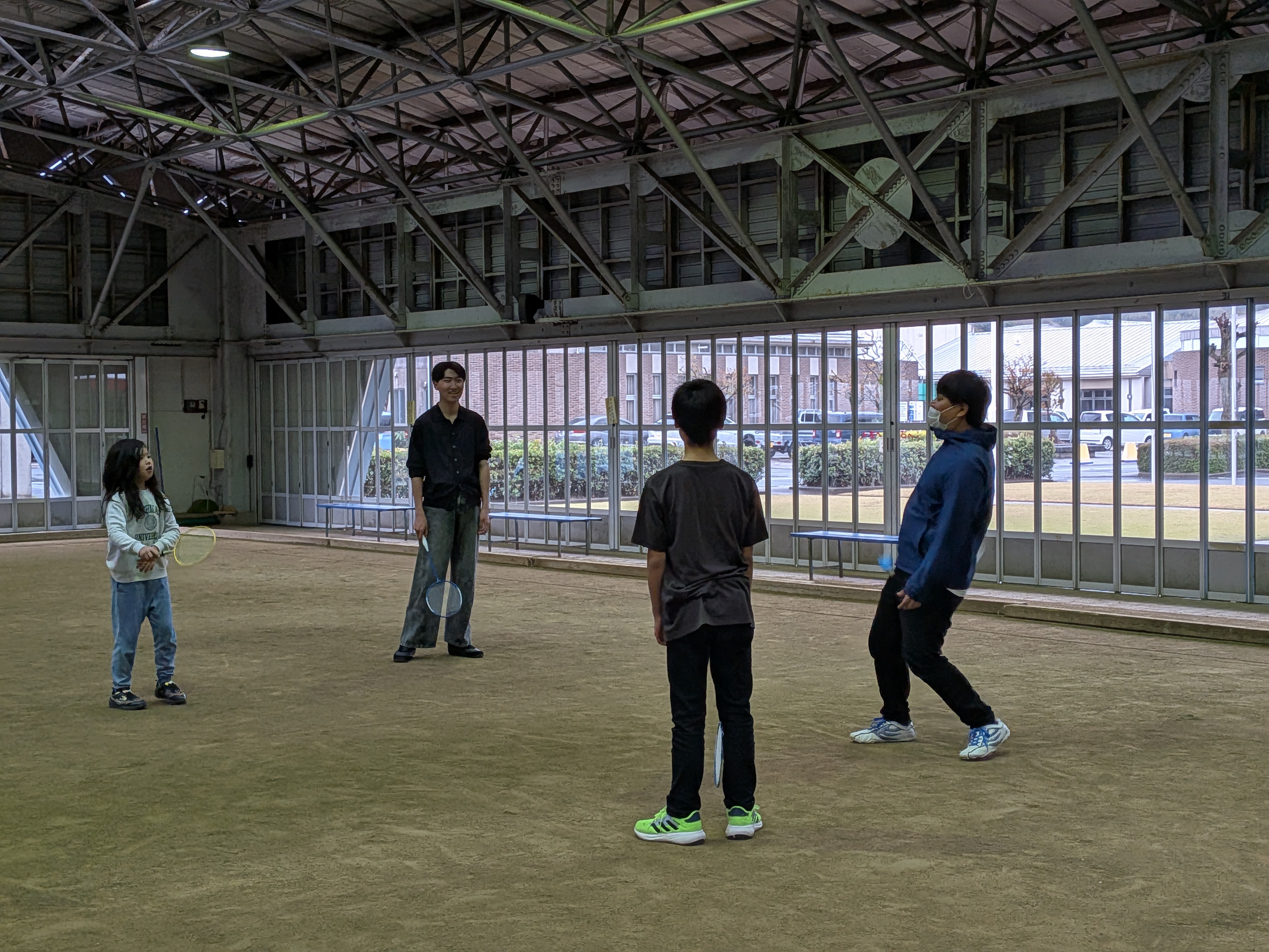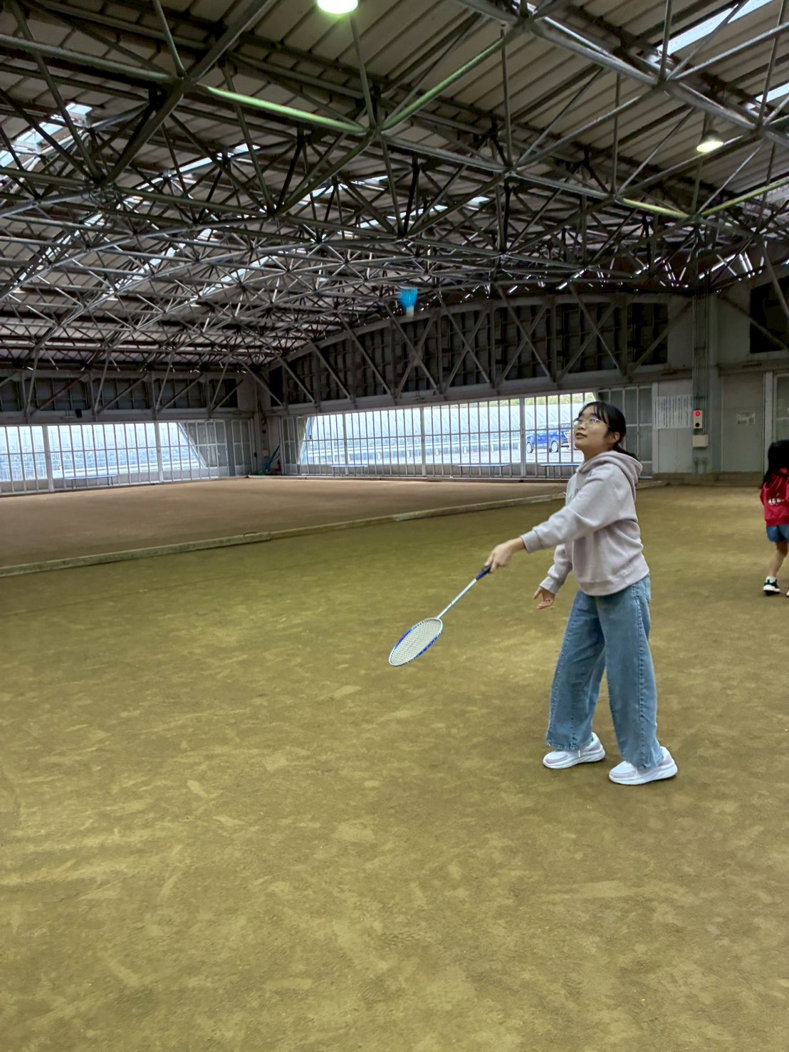外組は、雨☔がふっていたので、屋根のあるグランド?屋内でスタッフと一緒に鬼ごっこしたり、キャッチボール⚾したり、バドミントン🏸したりと身体をしっかり動かしました🙋✨鬼ごっこでは、スタッフはヘトヘトになってました😂以外と子ども達の足が速いとの事でした😅